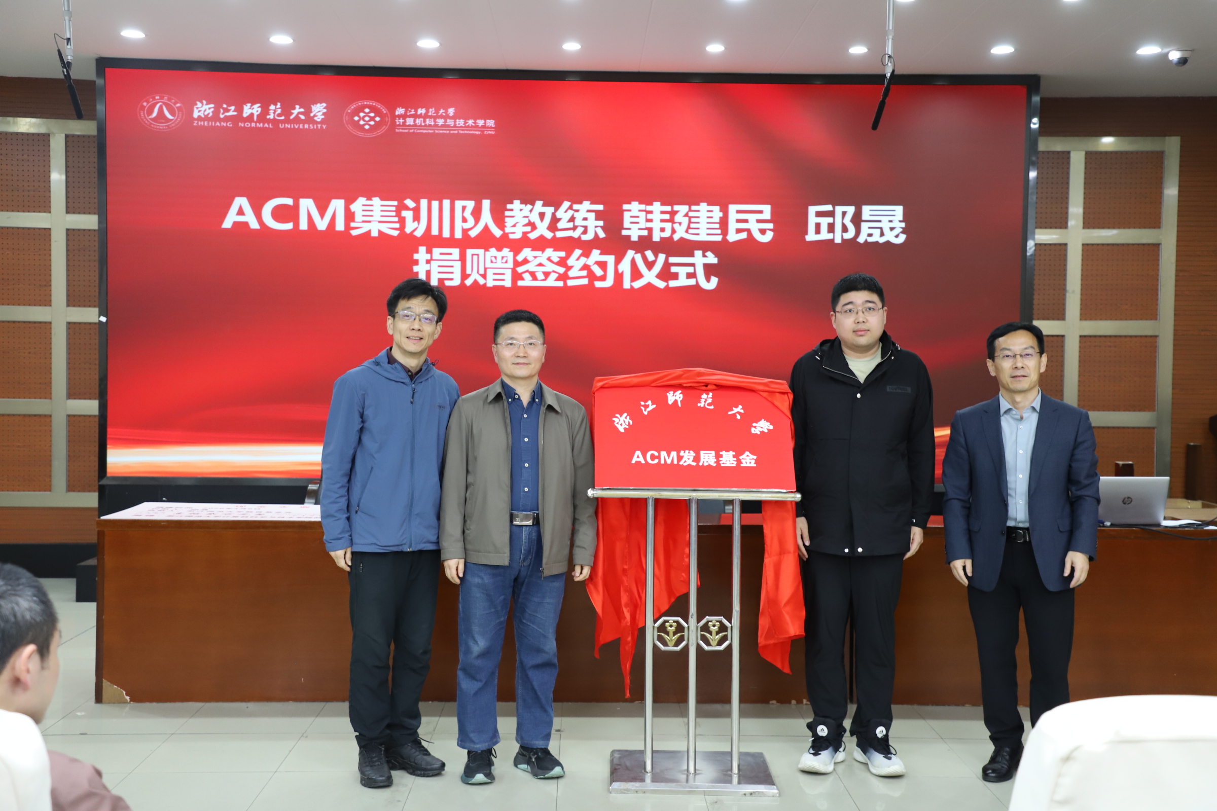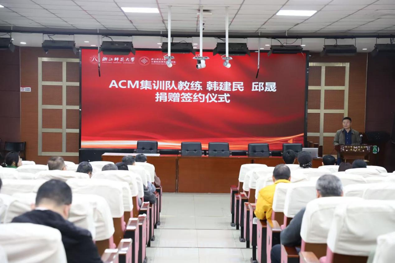在浙江师范大学七秩校庆之际,为助推计算机学院ACM集训队高质量发展、筑牢学科竞赛人才培养根基,我院于4月8日举办ACM发展基金捐赠仪式。浙江师范大学校友工作与发展联络办公室副主任周文忠,计算机学院院长郑忠龙、党委书记郦炬、副院长周昌军、副院长贾日恒及学院全体教职工出席本次活动。